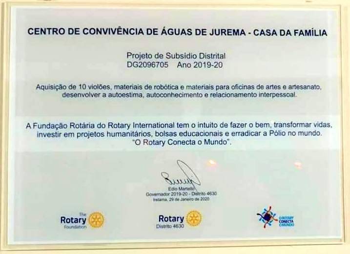 Solenidade de entrega do Projeto de Subsídio Distrital 2066705, no valor de R$ 20.042,00, realizado pelo Rotary Club de Iretama em parceria com a Fundação Rotária e o Município de Iretama, através da Secretaria Municipal da Assistência Social, ao Serviço de Convivência de Águas de Jurema – Casa da Família.